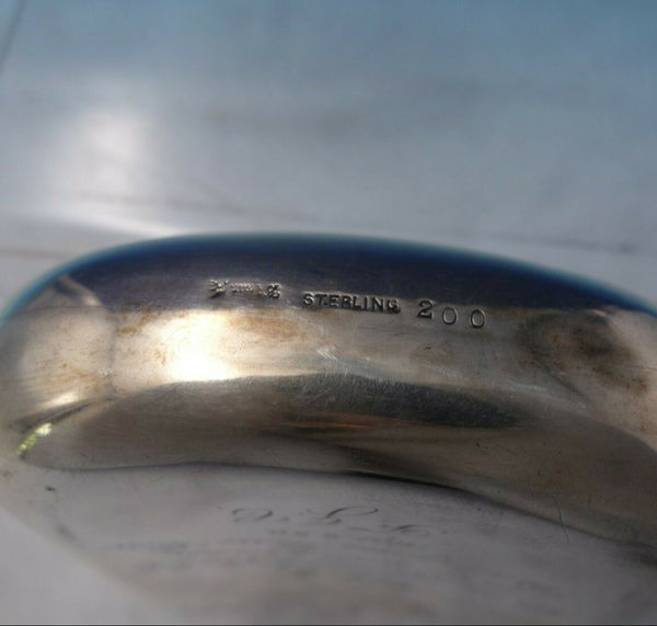 Fabulous Wallace sterling silver flask marked #200. This piece measures 6 1/4" tall x 3 1/4" and weighs 5.7 troy ounces. This flask is hand engraved with horse drawn carriage on front, with horse, rider, monogram, and inscription on the back (see photos). It is in good vintage condition. Marvelous!