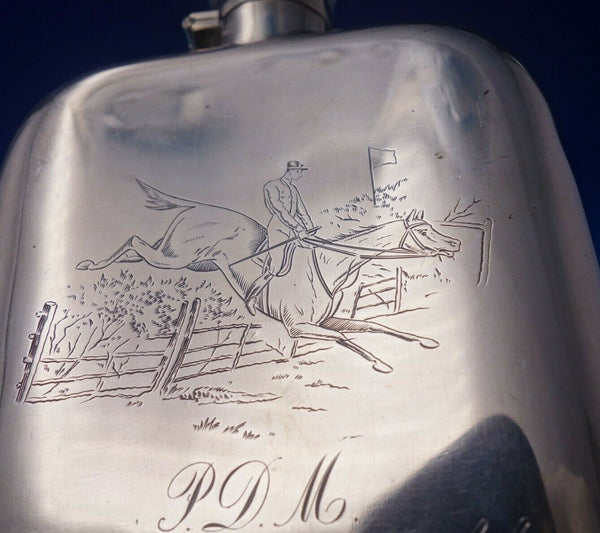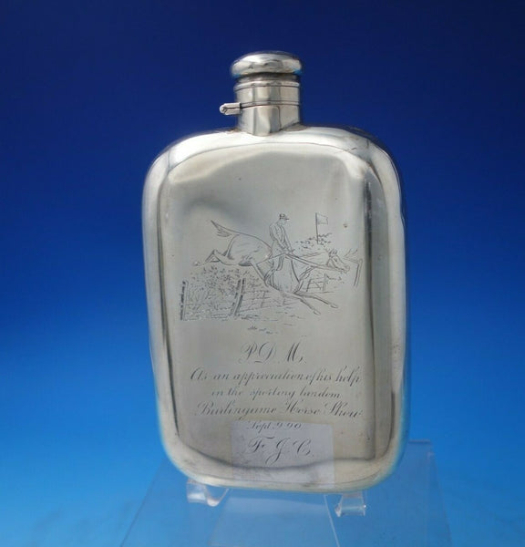 Wallace Sterling Silver Flask w/ Horse Drawn Carriage Rider #200 5.7 ozt (#5894)