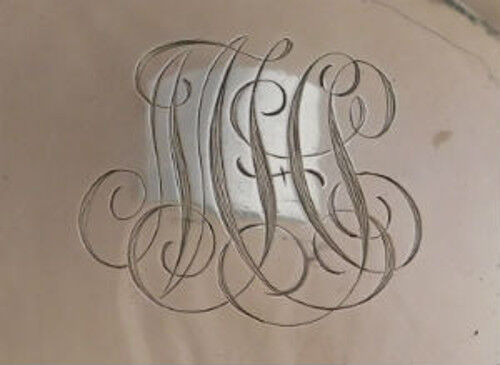 It measures 2 1/2" tall, 10 1/4" in diameter, and weighs 19.55 troy ounces. It has a scrolly monogram in the center (see photos), and is in good estate condition. Extraordinary!