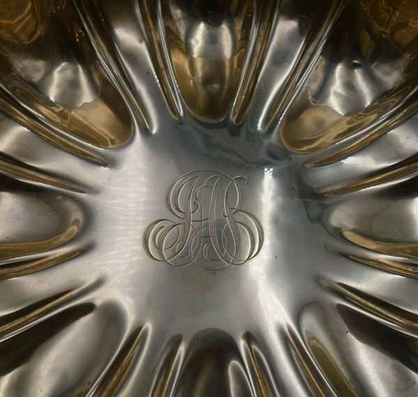 The bowl measures 3" x 10 1/4" in diameter and weighs 13.33 troy ounces. It has a vintage scrolly monogram in the center (see photos), and is in excellent condition. Superb!