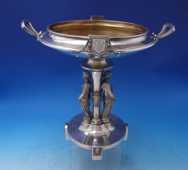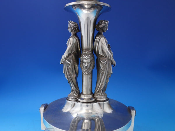 Stunning Bust by Gorham sterling silver centerpiece with two figural 3-D maidens and four busts around base, circa 1865. It is marked #270.