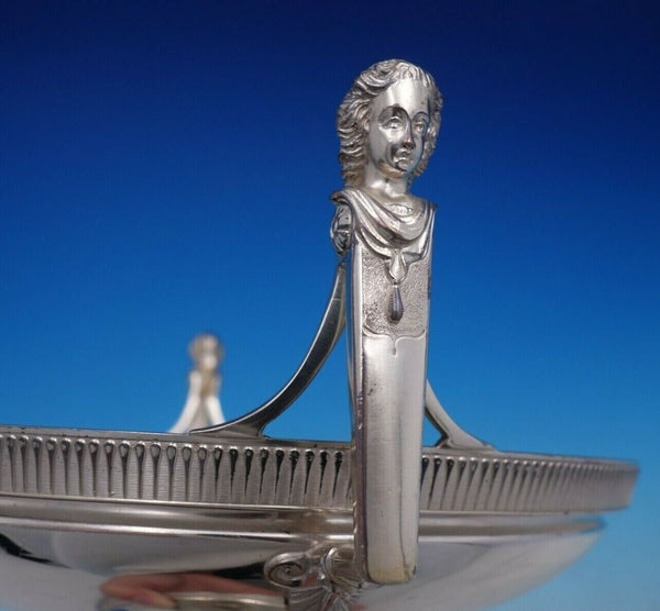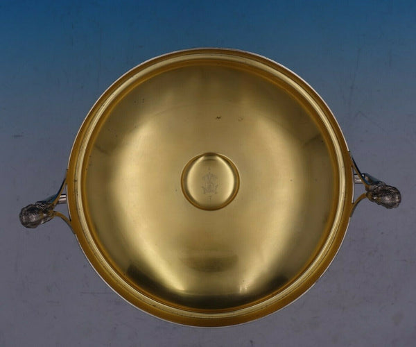 Exceptional Bust by Gorham sterling silver shallow centerpiece bowl with gold washed interior, bust handles, and Acanthus decor. It is marked #211. This piece measures 10 1/4" x 6 1/2" and weighs 21.0 troy ounces.