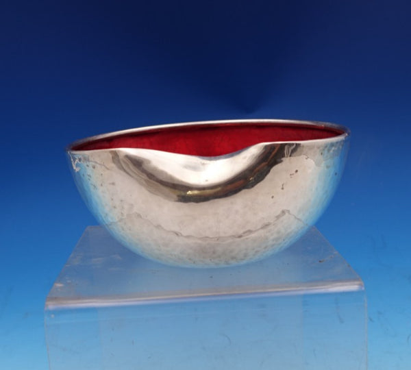 Gorgeous Thumbprint by Elsa Peretti / Tiffany and Co sterling silver hand hammered thumbprint bowl with a beautiful ruby red interior made in Italy (retail $1,000). This piece measures 2 1/4" tall x 5" and weighs 5.1 troy ounces. It is not monogrammed and is in good estate condition as shown in the photos. Outstanding piece!