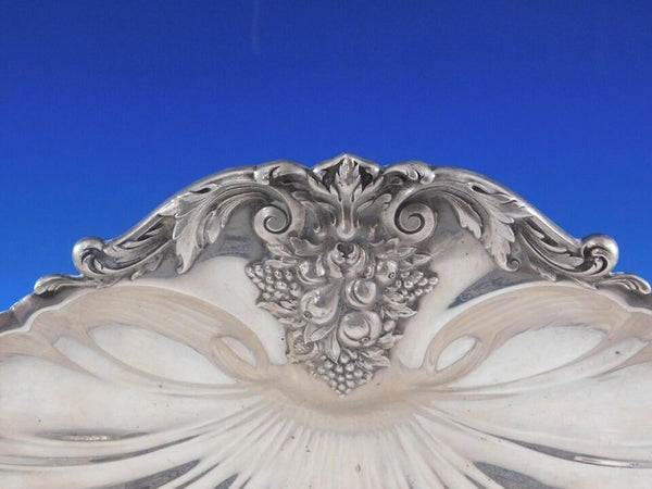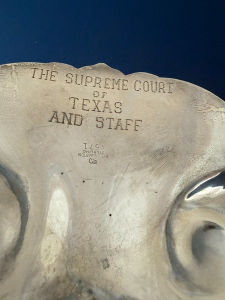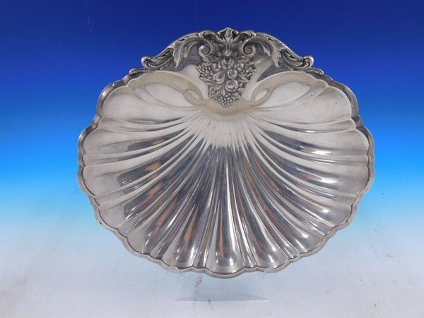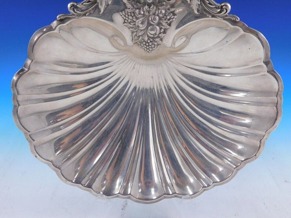 Spectacular Francis I by Reed and Barton sterling silver fruit bowl in shell form with grape feet marked #X571. This bowl measures 11 3/4" x 10 1/2" x 2 3/4" and weighs 20.95 troy ounces. It has an engraving on the underside "The Supreme Court of Texas and Staff" (see photos). It is in good estate condition as shown. Exceptional!