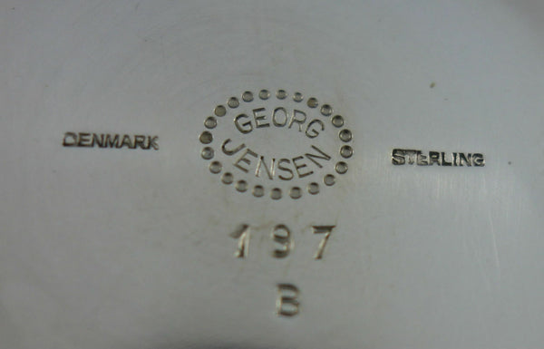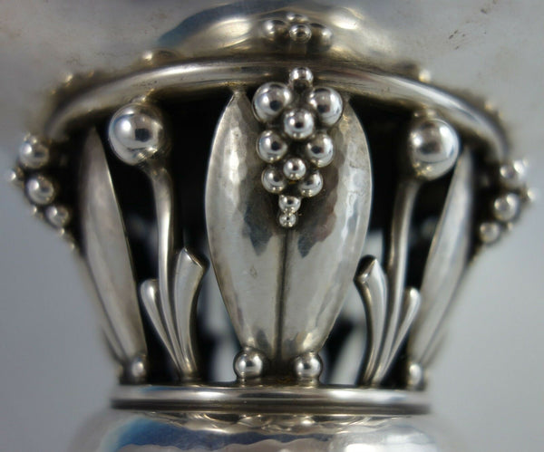 Gorgeous Georg Jensen sterling silver footed bowl with a base made of beautiful 3-D leaves and applied beads/berries. The piece is marked #197B, measures 5 3/4" tall x 4 3/8" and weighs 10.7 troy ounces. It is not monogrammed and is in excellent condition. Absolutely stunning!