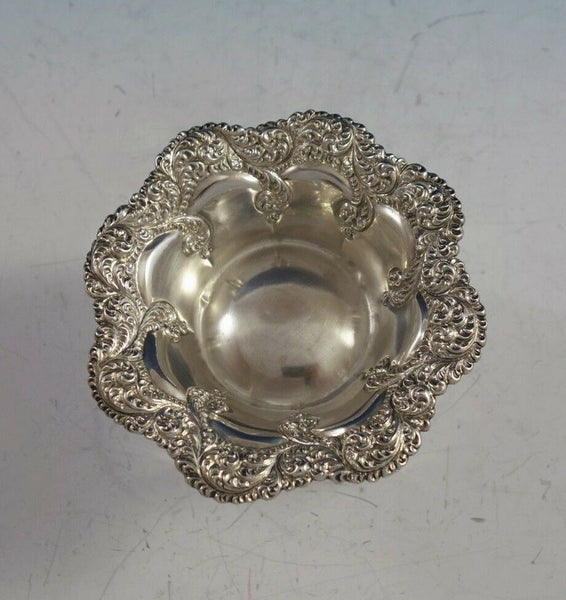 Pretty Gorham sterling silver bon bon bowl that is decorated with a swirled rococo design. The piece is marked #477M.