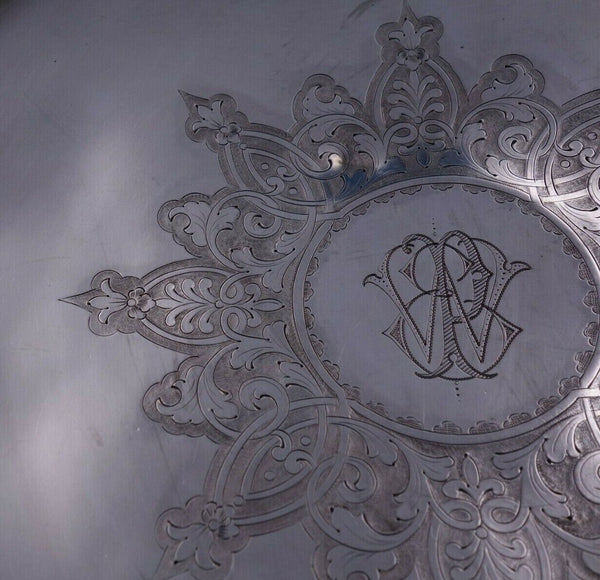 Superb Gorham sterling silver centerpiece pedestal bowl or dessert stand featuring hand chased scrollwork and beautiful wide border. This piece is marked #270 and was made in the 1880's.