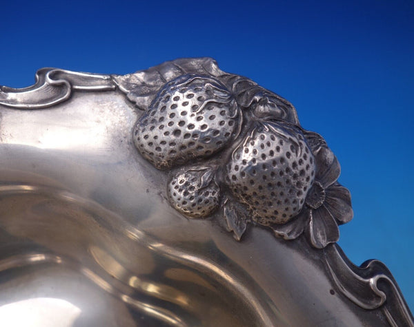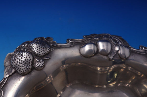 Superb Gorham sterling silver fruit bowl with strawberry and cherry motif marked #A4118. This piece measures 11" x 9" and weighs 14.8 troy ounces. It is monogrammed in the center (see photos), and is in good estate condition. Wonderful!