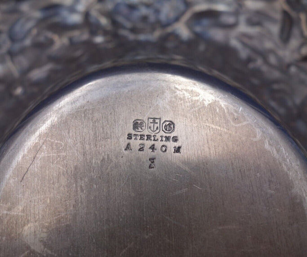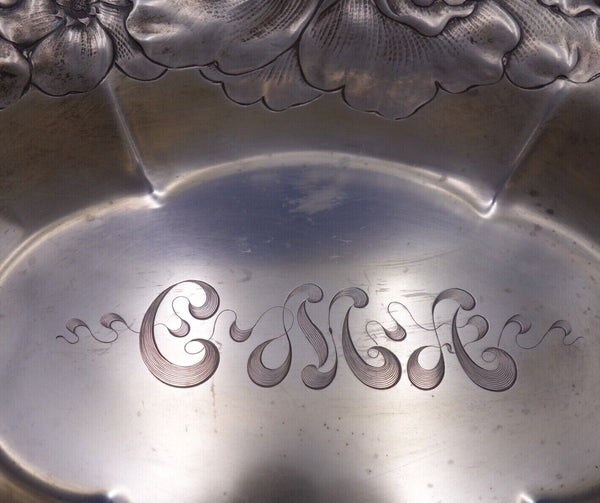 Lovely Gorham sterling silver vegetable bowl featuring a wide floral border with chrysanthemums. This piece is marked #A240M with a date mark for 1901. The bowl measures 2" x 15" x 11 1/4" and weighs 26.2 troy ounces. It is monogrammed (see photos), and is in good vintage condition. Wow!