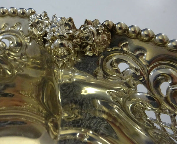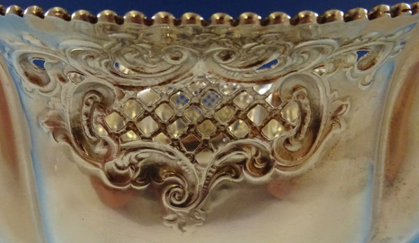 Stunning Hamilton Diesinger sterling silver pierced fruit bowl with beaded edge. The bowl is 3 1/4" tall x 10" in diameter and weighs 19.8 troy ounces. It is not monogrammed and is in excellent condition. Beautiful!