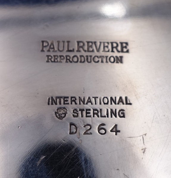 Large impressive Paul Revere Reproduction by International sterling silver punch bowl. The unadorned style pairs perfectly with International's 1810 pattern. This punch bowl measures 14 1/2" in diameter x 7 1/2" tall and weighs a heavy 73.4 troy ounces. It is not monogrammed, and is in excellent vintage condition. Fantastic!