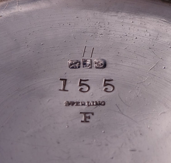 This piece measures 3" x 4 5/8" and weighs 7.5 troy ounces. It is monogrammed (see photos), and is in good estate condition, with minor damage on rim as shown. It will be beautifully polished prior to