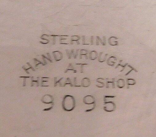 Kalo sterling silver porringer with handle #9095. The vintage monogram on the handle (see photos) can be removed and will be professionally polished. The piece measures 1 1/2" x 6 1/4", and it weighs 4.77 ozt. It is in good estate vintage condition. Charming!
