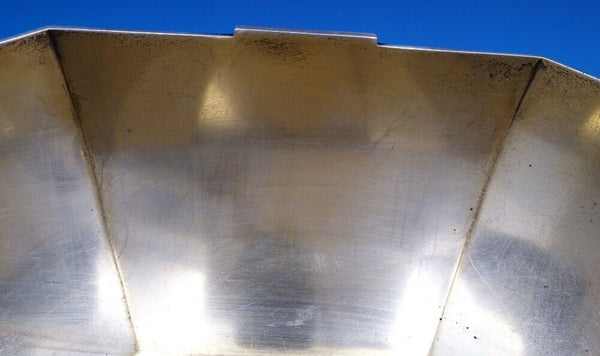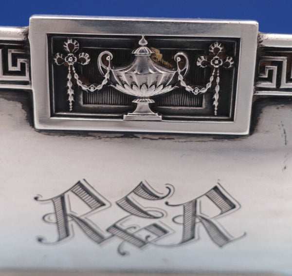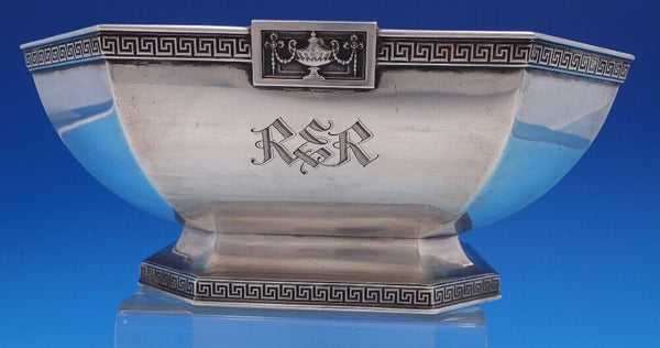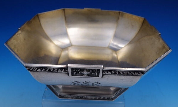 Lansdowne by Gorham sterling silver 9-Sided Fruit Bowl gold-washed with pedestal style base, marked #A10713. It has an intricate Etruscan design around the rim and base. This bowl measures 8" in diameter x 3 5/8" tall and weighs 25.2 troy ounces. It is monogrammed "RR" (see photos) and is in good vintage condition. Gorgeous!