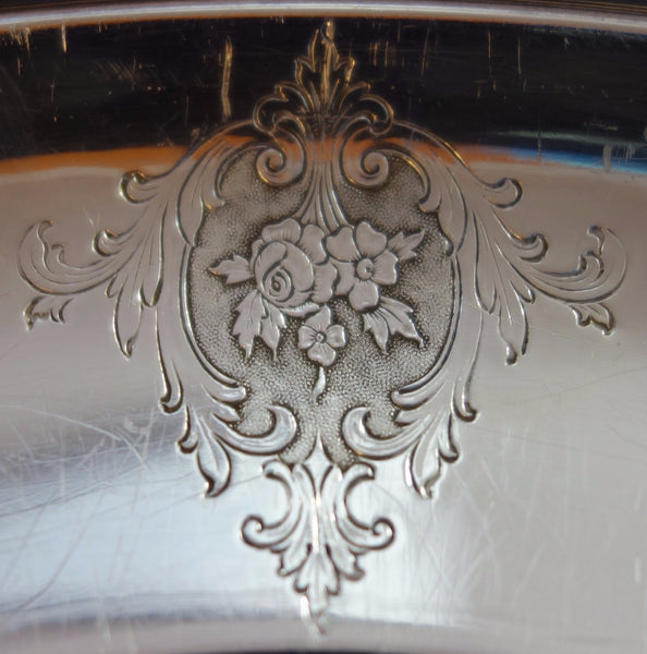 Louis XIV by Towle sterling silver centerpiece bowl marked #6616. This piece weighs 17.5 troy ounces. It measures 1 1/4" tall with a diameter of 12". It is monogrammed "GOR". It is in excellent condition. Fabulous!