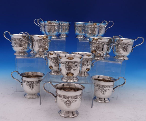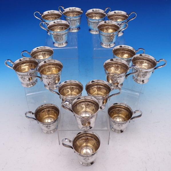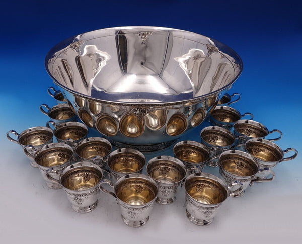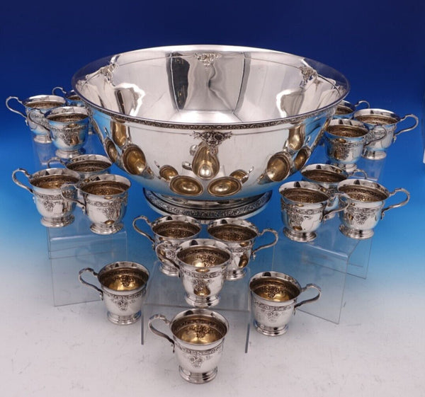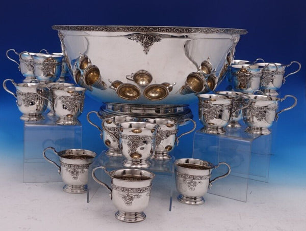 Stunning Meadow Rose by Wallace sterling silver nineteen piece punch bowl set circa 1910. This set includes: