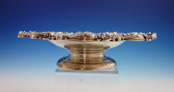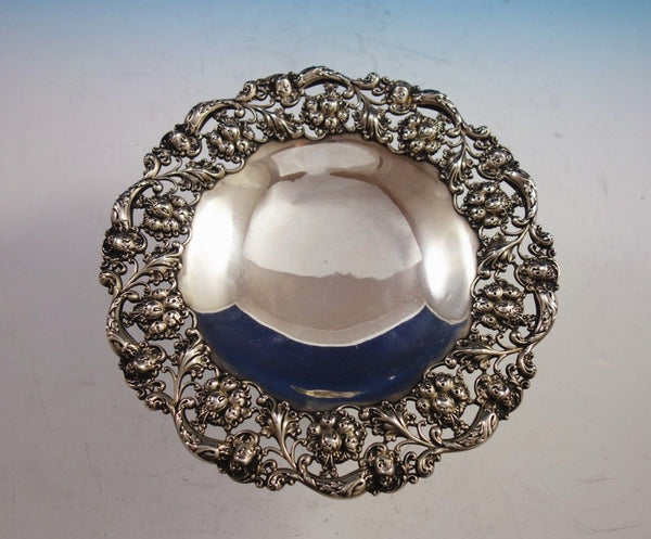 Beautiful Meriden Britannia sterling silver footed fruit bowl featuring a pierced floral design wide border, marked #896. The bowl measures 2 3/4" x 11 3/4" in diameter, and it weighs 26.7 troy ounces. It is not monogrammed and is in good vintage condition. Lovely!
