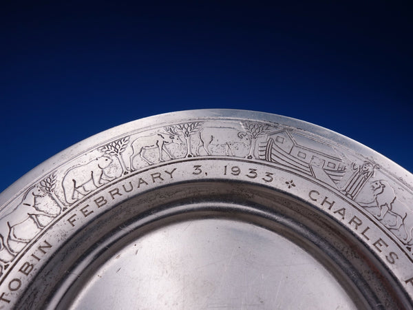 Noah's Ark by Tiffany Co. sterling silver bowl and plate child's set. The bowl measures 2" x 3 1/2" and weighs 7.67 ozt. The plate measures 3/8" x 6" and weighs 7.24 ozt. Both pieces are monogrammed (see photo) and are in good vintage condition with minimal signs of wear. Unique set!