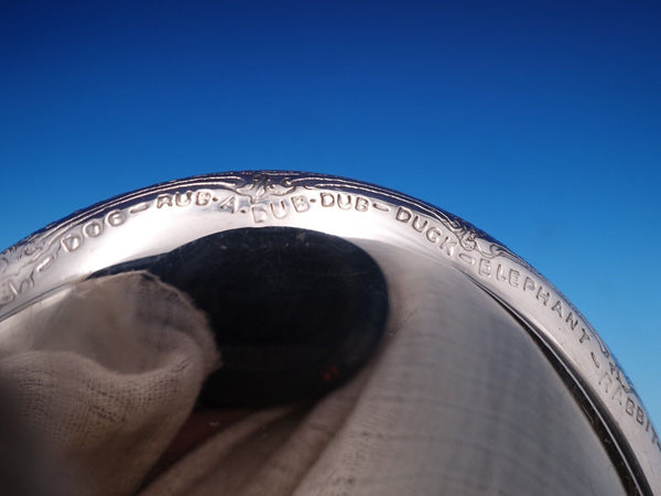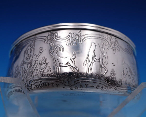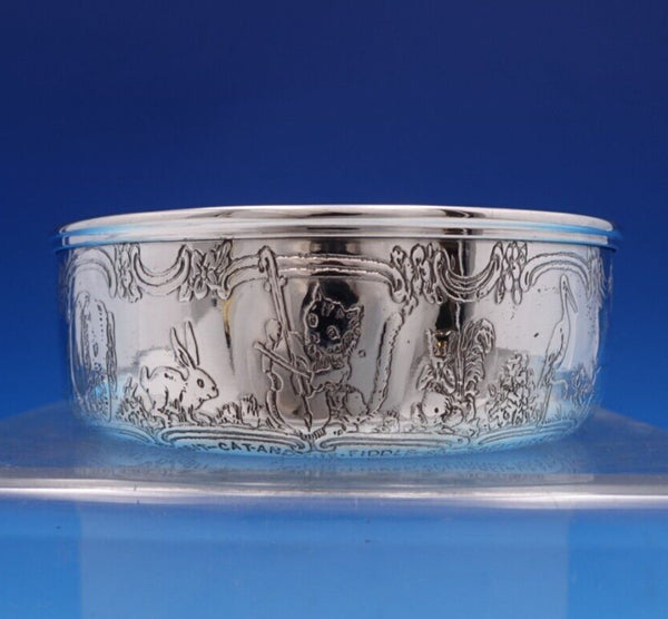 Charming Nursery Rhyme by Weidlich sterling silver baby bowl with acid etched nursery rhyme scenes marked #7870. This bowl measures 1 5/8" tall x 3 3/4" and weighs 2.4 troy ounces. It is not monogrammed and is in good estate condition. Fantastic!
