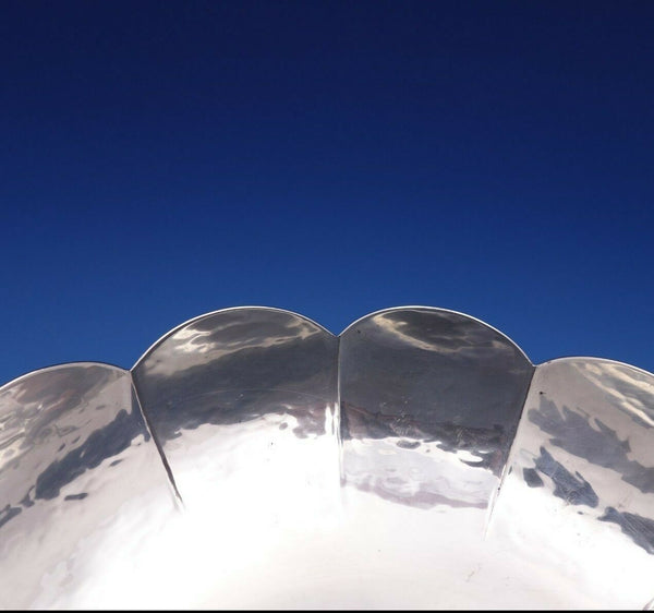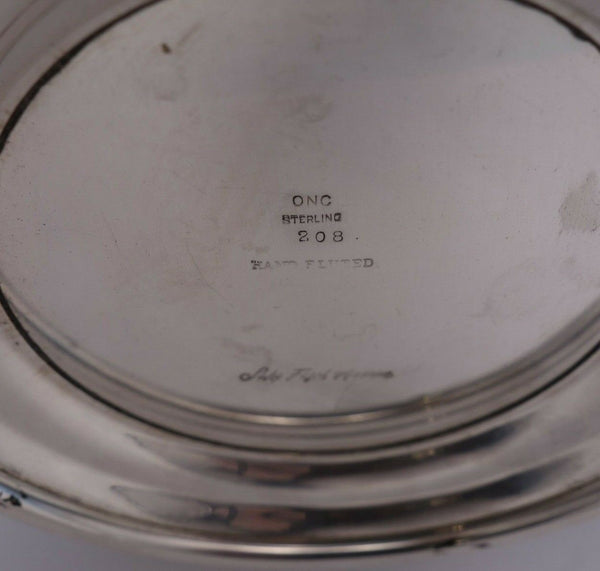 Fabulous Old Newbury Crafters ONC sterling silver footed bowl that is handwrought with fluted rim. It was retailed by the Saks 5th Avenue store. The piece is marked #208 and " Hand Fluted" . The bowl measures 8" in diameter and 2 3/8" tall, and weighs 13.77 troy ounces. It is not monogrammed and is excellent condition. Extraordinary piece!
