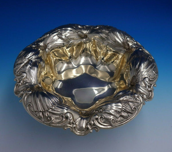 Exceptional Poppy by Whiting sterling silver large fruit bowl marked #6072. This piece measures 3" tall x 12" in diameter and weighs 22 troy ounces. It is not monogrammed and is in good vintage condition. Gorgeous piece!