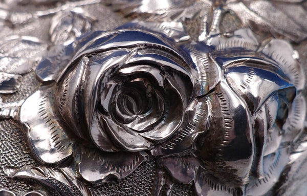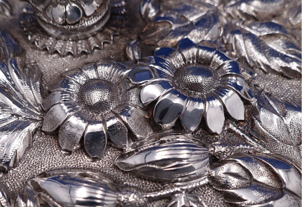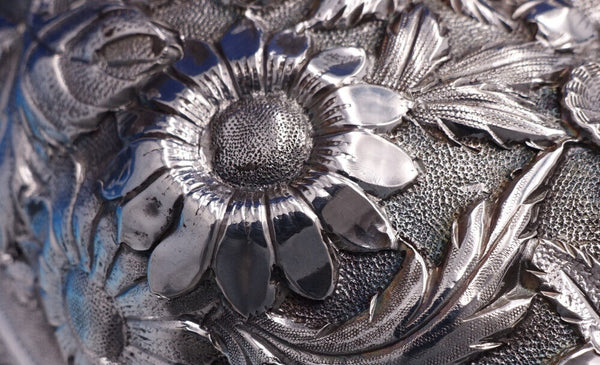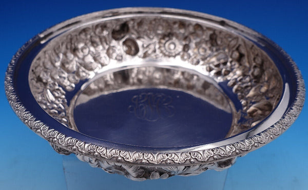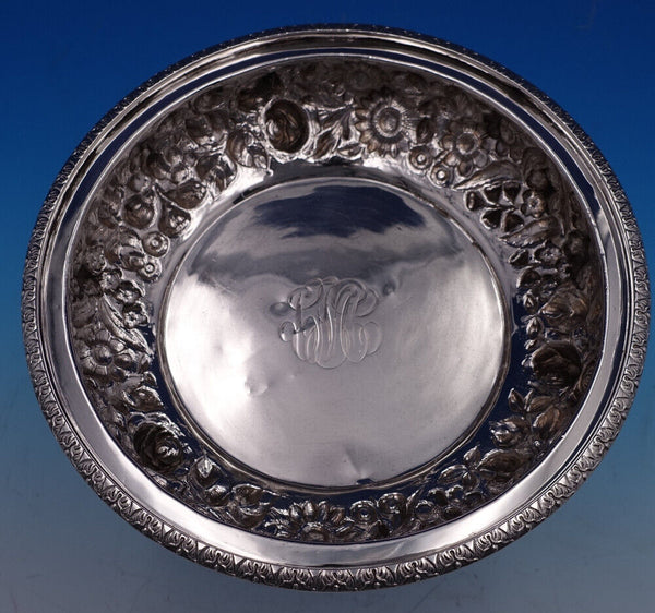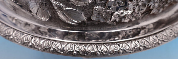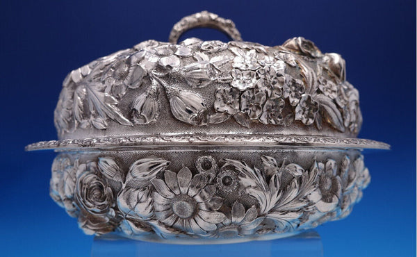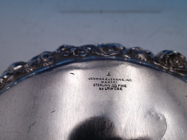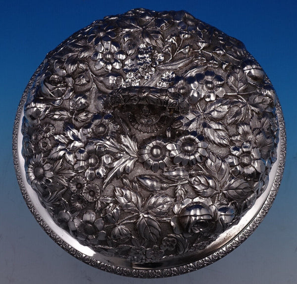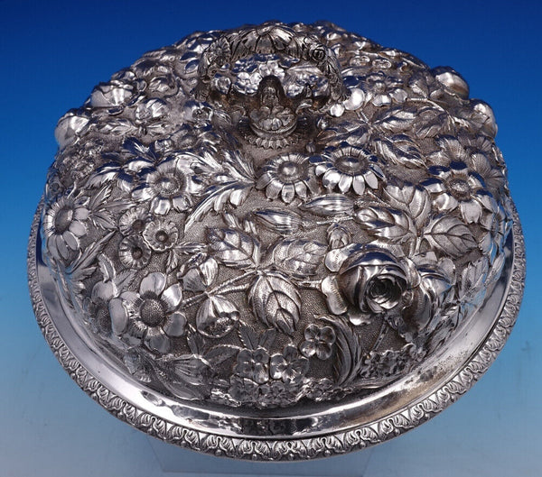 Gorgeous Repousse by Jenkins and Jenkins sterling silver Round Covered Entree Dish marked #246. This piece measures 8 3/4" in diameter x 5 3/4" tall (to top of handle)