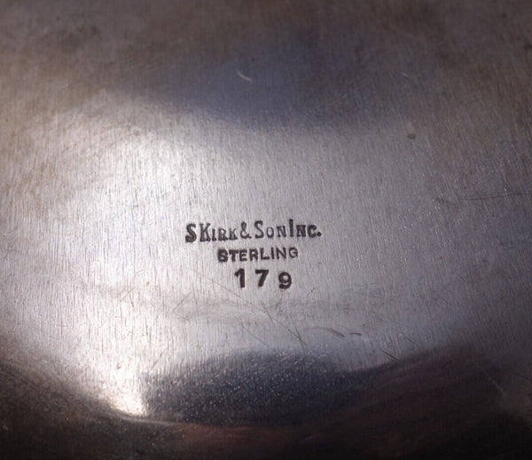 Lovely Repousse by Kirk sterling silver fruit bowl marked #179. This bowl measures 2 1/2" tall x 11 1/4" and weighs 19.4 troy ounces. It is not monogrammed and is in good estate condition as shown in the photos. Beautiful!