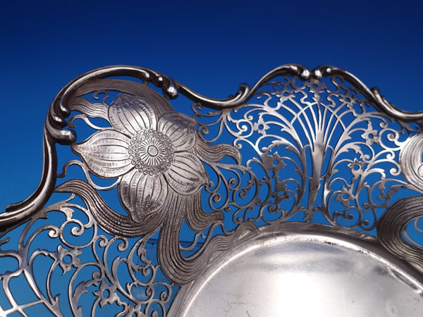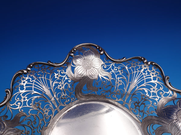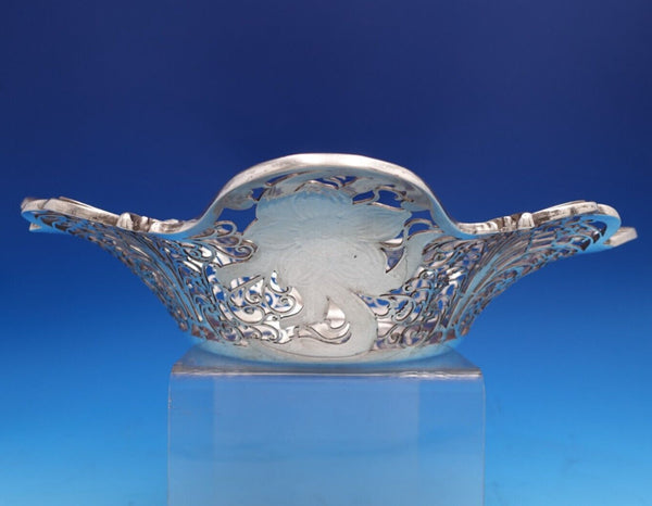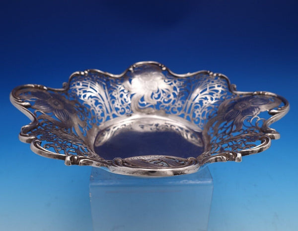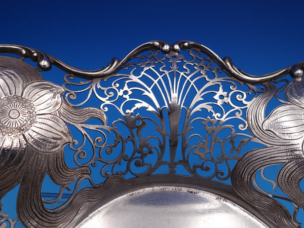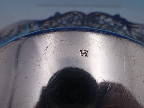 Lovely Roger Williams sterling silver pierced and chased floral fruit bowl marked #768S. This bowl measures 4" tall x 12" and weighs 24.2 troy ounces. It is not monogrammed and is in good estate condition. Pretty!