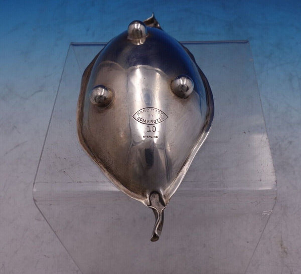 Gorgeous Sciarrotta sterling silver, handmade, almond shape bowl with three feet on the underside, marked #10. This piece measures 1 3/4" x 7" x 3 1/4" and weighs 3.2 troy ounces. It is not monogrammed and is in good vintage condition. Stunning!