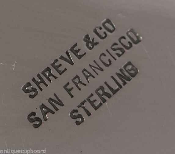 Impressive sterling silver terrapin bowl made by Shreve. The piece has an applied 3-D turtle on the handle. The bowl measures 1 1/8" x 5 1/8" , and it weighs 1.7 ozt. It has a scrolly monogram (see photo) and is in excellent condition.