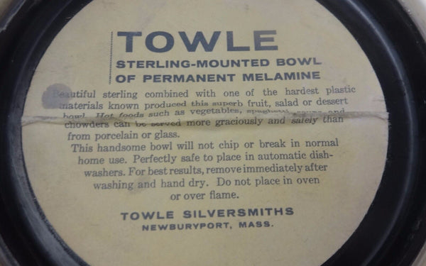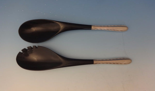 Modernistic black melamine bowl with sterling base and a coordinating salad set in Silver Flutes by Towle that were designed by Earl Pardon. The salad set measures 12" and the bowl is 4 1/2" tall and 11 1/2" wide. The pieces date from the 1960's. They are not monogrammed and are in excellent condition. SKU#0085.