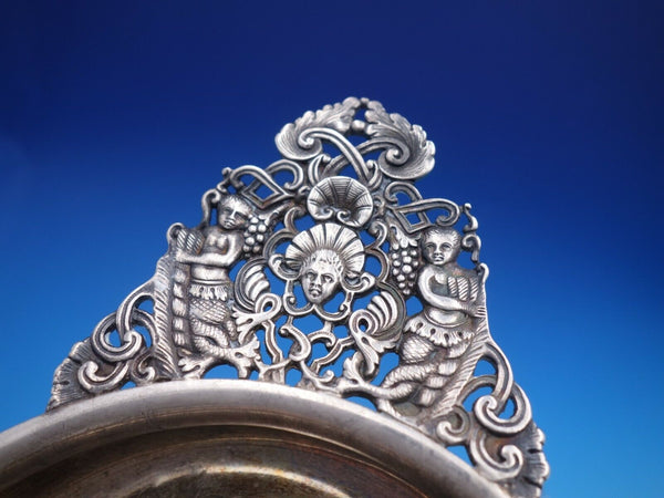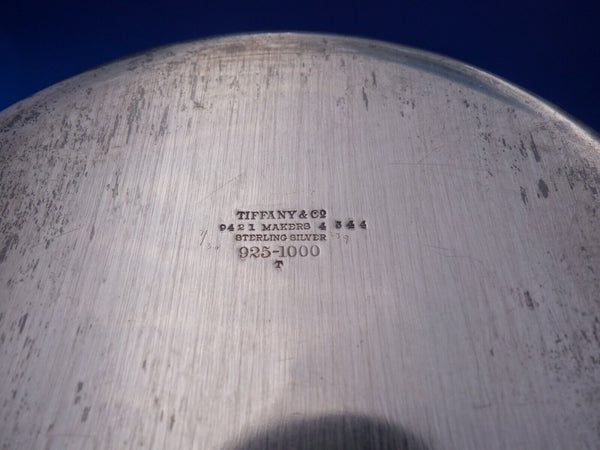 Tiffany Co. monogrammed sterling silver porringer with mermaids marked #9421 4544 and 3 1/2 gills. It measures 1 1/2" x 7" x 5" and weighs 7.1 ozt. It is monogrammed "Simeon Brooks Chapin Jr. March 31st 1903" and is in good vintage condition with a few small dings. Crisp pattern detail! Unique piece!