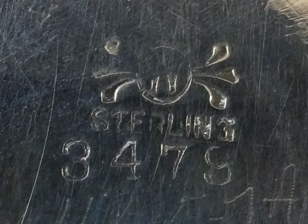 Victoria aka Florence by Frank Whiting sterling silver bowl. The piece is marked with #3479, measures 2 1/4" tall x 8 1/2" diameter, and it weighs 6.92 ozt. It is not monogrammed and is in excellent condition.