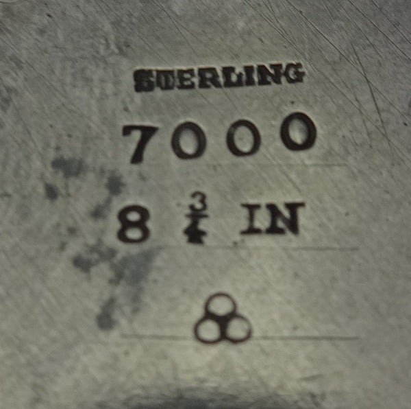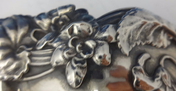 Elegant Violet by Whiting sterling silver fruit bowl. It has a date mark for 1908, "GWL" monogram, and #7000. The bowl measures 1 1/2" tall, 8 3/4" in diameter, and it weighs 6.4 ozt. It is in excellent condition. Exquisite! SKU#0698.