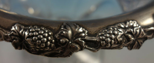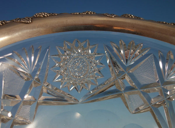 Impressive Wilcox Co. punch bowl made of cut glass with a sterling silver rim that features grapes and grape leaves. The bowl measures 8 1/2" tall x 9 5/8" diameter. It is not monogrammed and is in excellent condition. Magnificent!