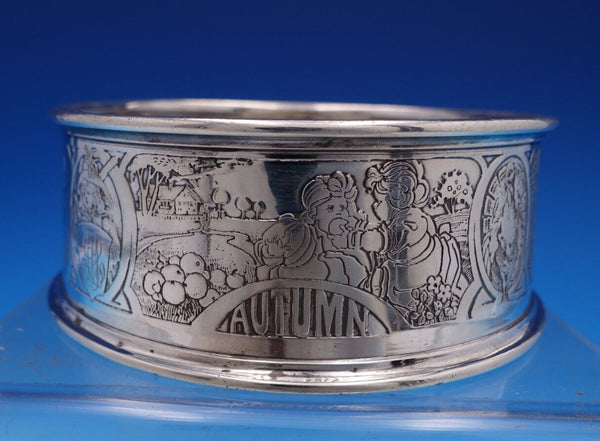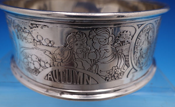 Charming William Kerr sterling silver acid etched child's bowl marked #1528. This bowl features four seasons with turkey, santa, easter bunny, and witch (see photos). This piece measures 1 3/4" tall x 4 3/8" and weighs 6.44 troy ounces. It is monogrammed (see photos), and is in good estate condition. Fantastic!
