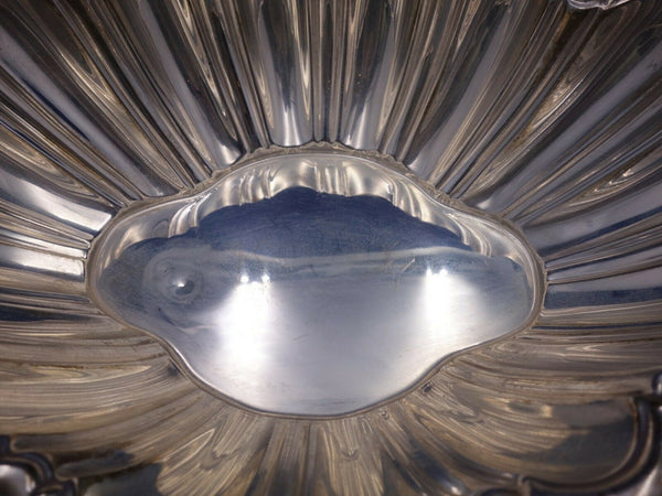 Lovely sterling silver oval serving bowl featuring claw feet and marked #X811. This piece measures 3 3/4" tall x 12 1/2" x 8 3/4" and weighs 20.2 troy ounces. It is not monogrammed and is in good vintage condition. Beautiful piece!