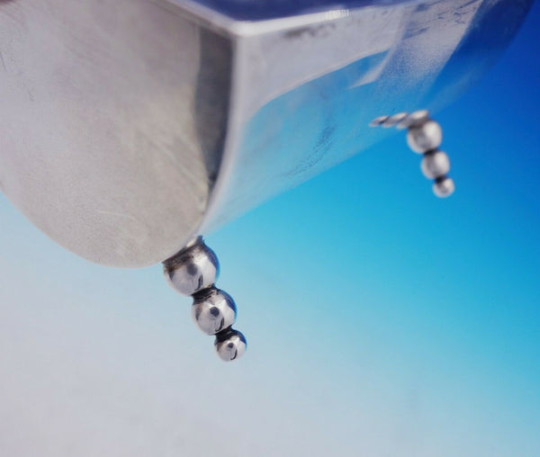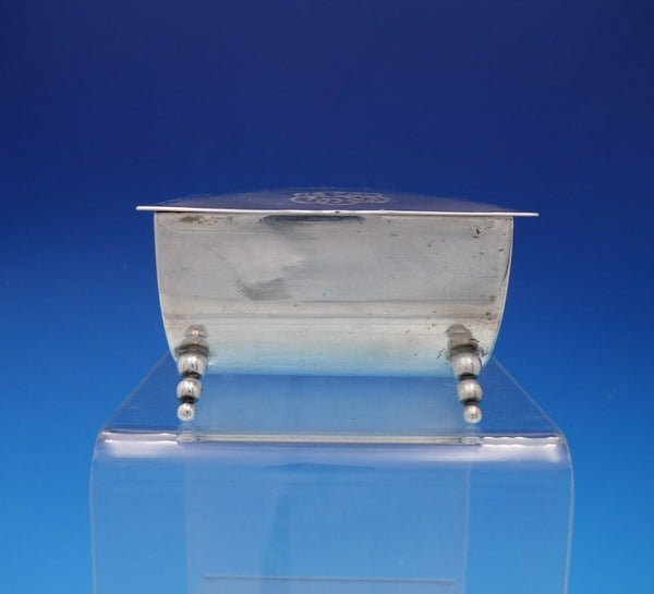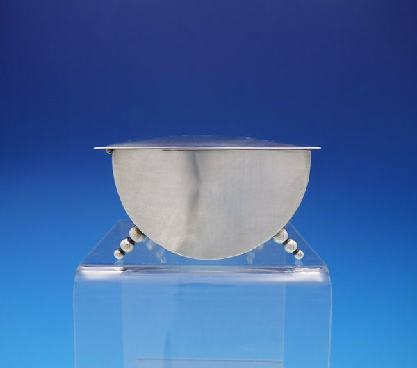 Stunning Georg Jensen USA sterling silver jewelry box marked #22. This piece has a unique barrel shape with hinged lid and four beaded feet.