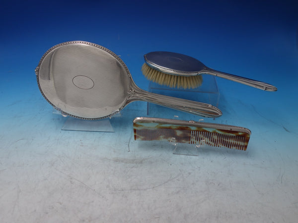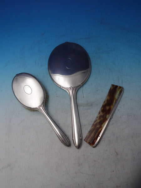 Shamrock V by Gorham sterling silver three-piece vanity set, marked #134-10. This set includes: