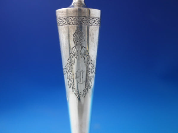 Outstanding sterling silver candlestick pair with brite-cut design by AG. This set measures 11 3/4" tall x 5 1/2" (base) and weighs 15.1 troy ounces total. It is not monogrammed and is in good vintage condition. Wonderful!