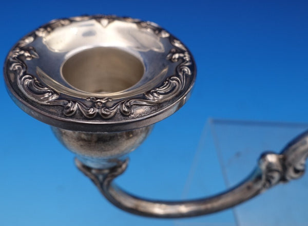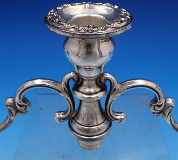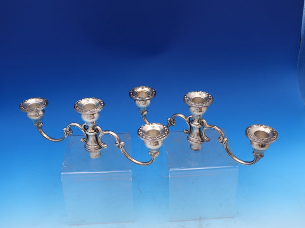 Chantilly by Gorham sterling silver pair of three-light candelabra tops (for #750 candlesticks). They measure 12" W x 4 1/4" Tall and are weighted. They are not monogrammed and are in good vintage condition as shown in the photos. Beautiful!