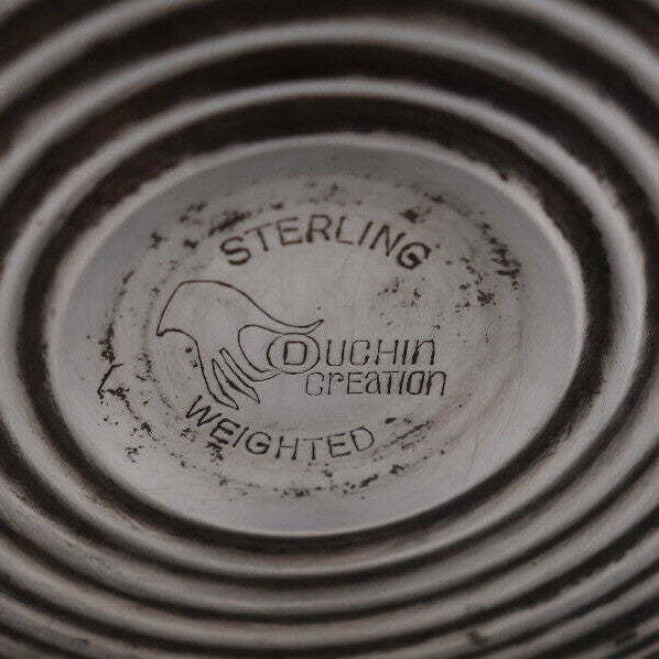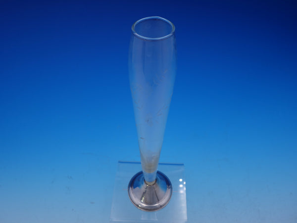 Beautiful Duchin Creations bud vase ith etched glass and weighted sterling base. It measures 10" tall x 2 1/2". It is not monogrammed and is in excellent condition.