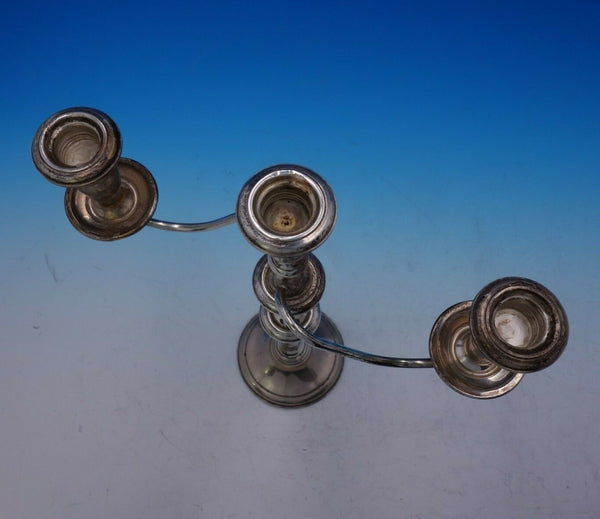Wonderful Empire sterling silver single 3-light candelabra (maker unknown). It measures 11 1/4" x 12 3/4" tall and is weighted. It is not monogrammed and is in excellent condition. This piece will be beautifully professionally polished prior to