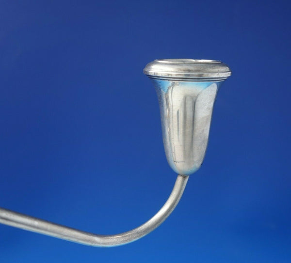 Marvelous Empire sterling silver three-light candelabra marked #670, circa 1940. This piece measures 12 1/2" x 11" and is weighted. It is not monogrammed and is in good vintage condition. Outstanding!