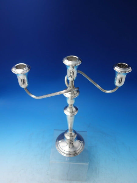 Wonderful French Antique by Reed Barton sterling silver three-light candelabra, circa 1940. This candelabra measures 12 1/2" x 11 1/2" tall and is weighted. It is not monogrammed and is in good vintage condition. Terrific!