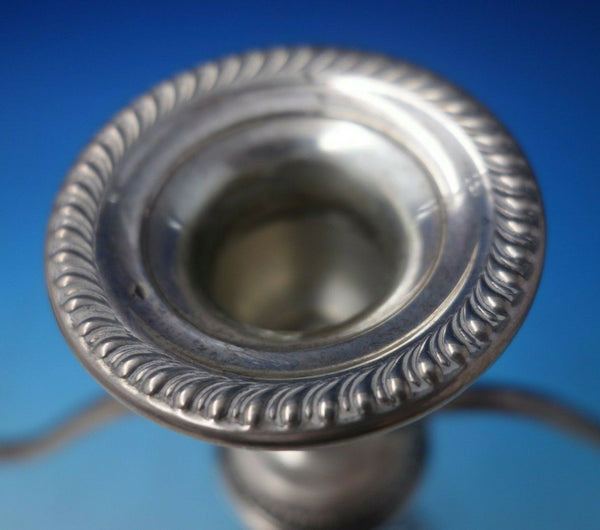 Gorgeous Gadroon by Empire sterling silver three-light candelabra pair marked #40. The pieces measure 11" tall x 10 1/2" and are weighted. They are in good vintage condition. Amazing!