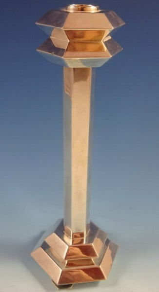 Unusual Judaica By Hazorfim (known as the Gorham of Israel) sterling silver candlestick.  The piece is 10 1/2" tall and it weighs 12.25 ozt.  It is not monogrammed and is in excellent condition.