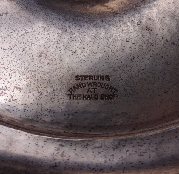 Magnificent Kalo sterling silver handwrought candlestick pair. The pieces measure 11 1/2" tall x 6 3/4" (base) and together weigh 52 troy ounces. They have a family crest on the base (see photos), and are in good estate condition as shown in the photos. Amazing!