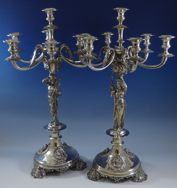 Magnificent Austrian 800 Silver Candelabra Pair 7-Light Figural Museum (#0088)