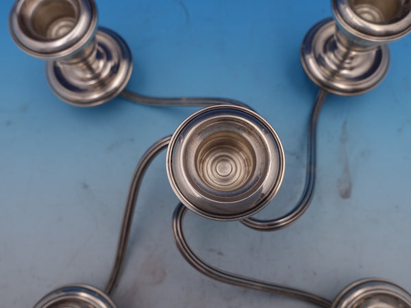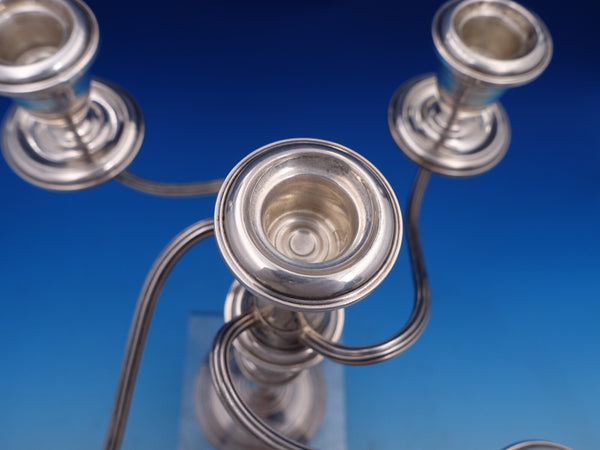 Fabulous Old French by Alvin sterling silver large five-light candelabra with swirling arms, marked #S257. This piece would coordinate perfectly with Old French by Gorham flatware. It measures 11" tall x 12" wide and is weighted. It is not monogrammed and is in good vintage condition. Stunning!